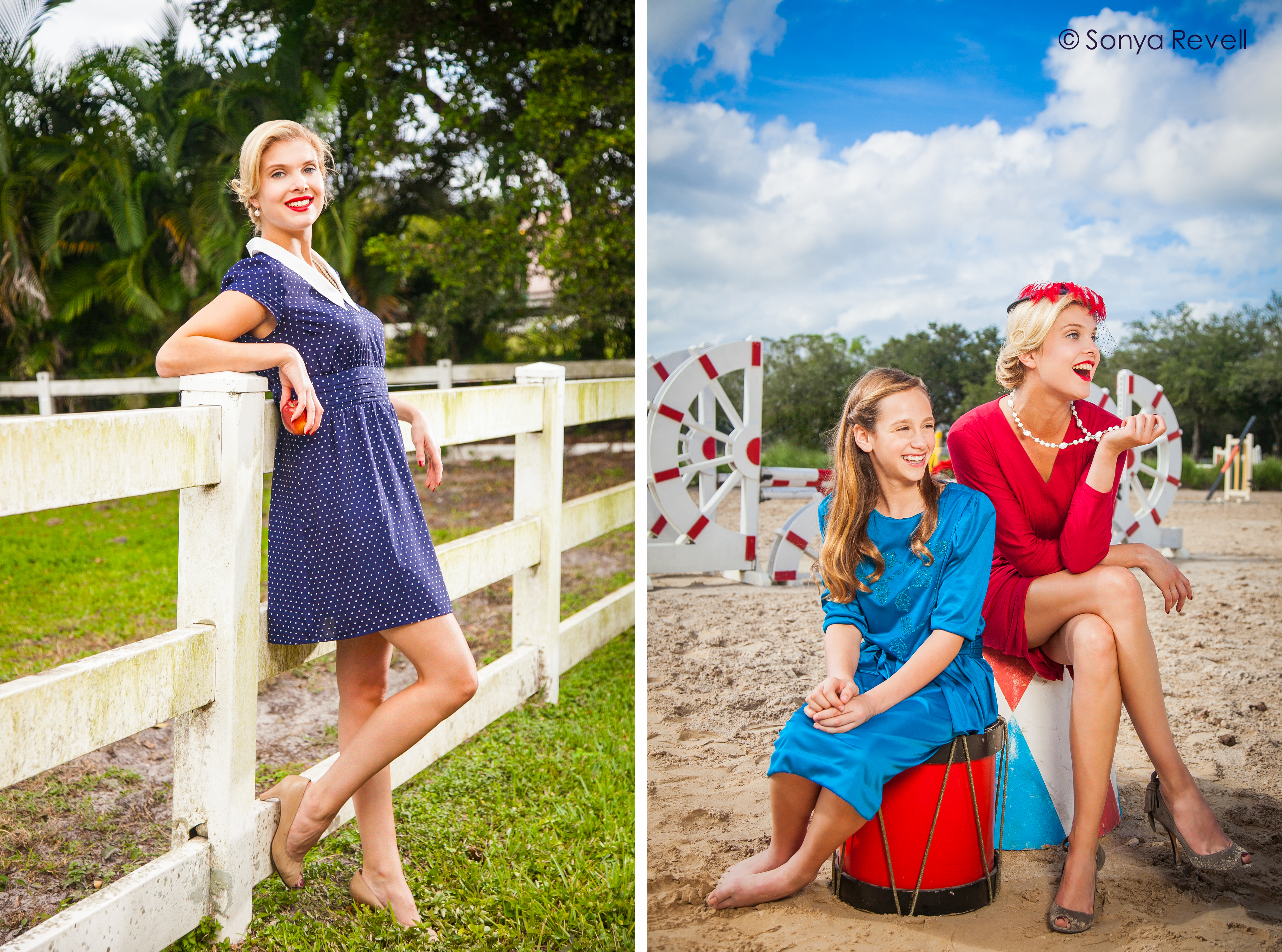After the portrait session, I was so inspired by the location (and Ava), I wanted to put together another shoot. I teamed up with kick-ass hair and makeup artist, Mel Paldino (www.melpaldino.com) and amazing clothing stylist, Laura Taylor (www.laurataylorstylist.com) and put together a fun, vintage-inspired, horse-farm themed shoot, with a little circus twist (that was a mouth-full). We found the gorgeous Alessandra Pozzi, of Mega Models and of course, our real-life equestrian/model, Ava Collins, to complete the shoot. I can’t leave out my awesome assistant, Dragi Stankovic, who took one for the team (and didn’t say a word) after stepping, bare-foot, in a red ant pile (ouch!).