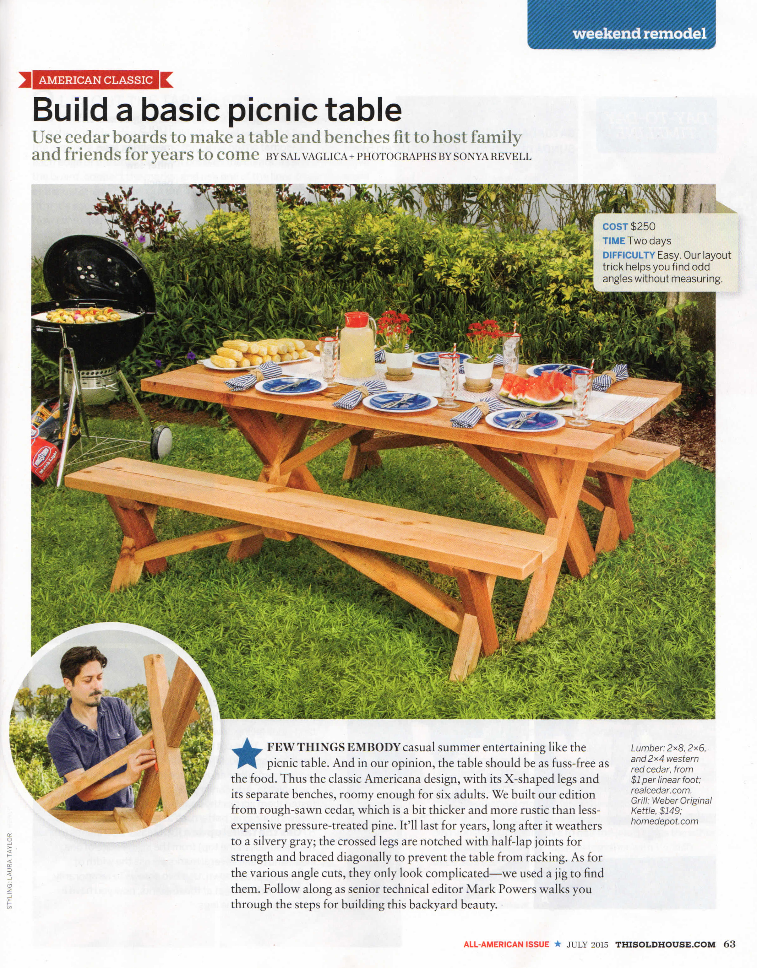 For my shoot with This Old House magazine, not only did I get the chance to collaborate with some great people, but I also got to get up-close-and-personal with a few power tools, while learning how to build a gorgeous cedar picnic table from scratch! Check out the ‘How-To’ story below, along with a few of my favorite portraits of senior technical editor, Mark Powers, in action.